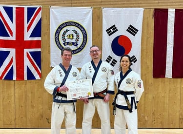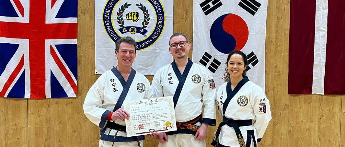 Pictured left to right: Mark Hipkin (Club Instructor 3rd Dan), Master Chris Smith (Area Instructor - 4th Dan) & Sarah Ravenscroft (3rd Dan & Double World Champion)